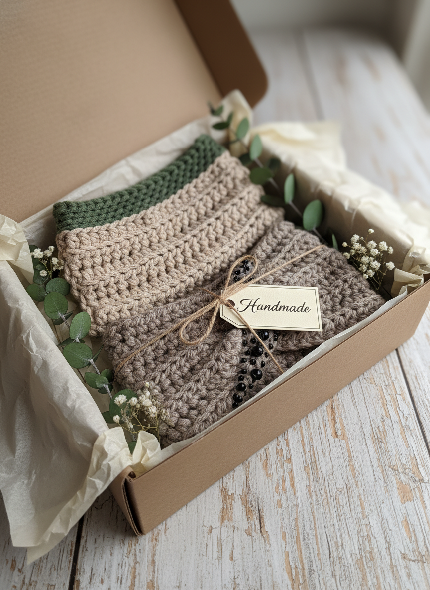 estetiko, uporabnost in toplino ročne izdelave. V paketu sta ročno kvačkan
