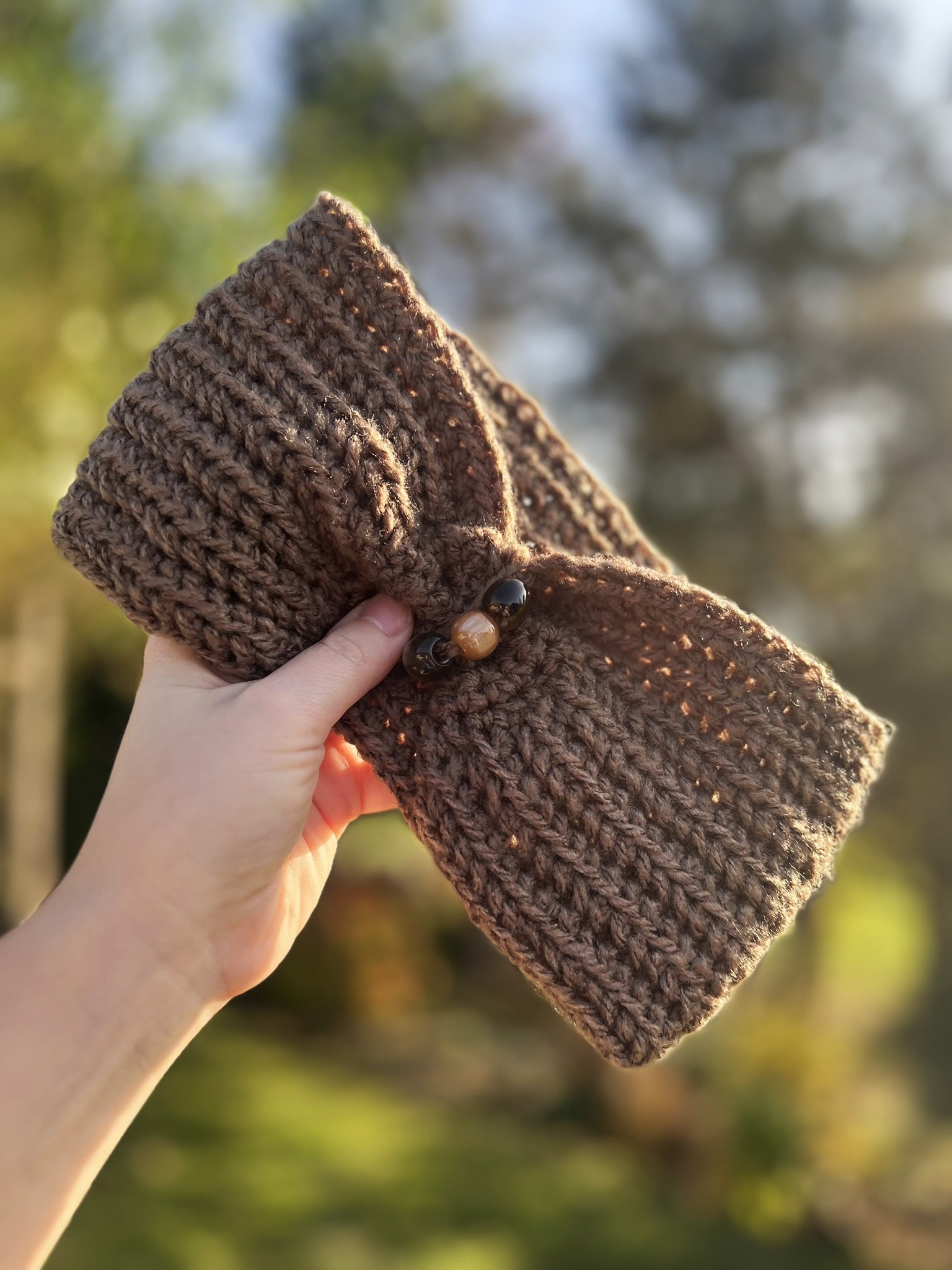 Odkrij čarobno nežnost kvačkanega dodatka za lase s trakcem Perlina, ki združuje toplino rjave preje in diskreten sijaj rjavih perl v sredini. Zaradi svoje lahkotne in raztegljive strukture se popolno prilega glavi, ne tišči in ostane udoben skozi ves dan. Trakec je popolnoma ročno izdelan, kar mu daje poseben, unikaten značaj.
