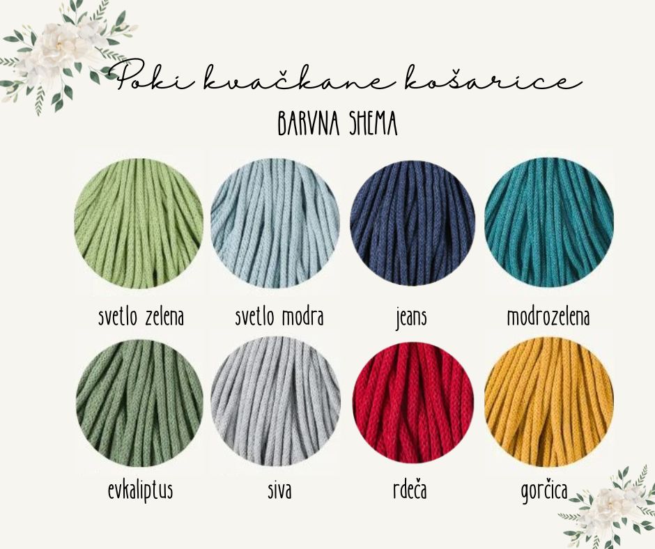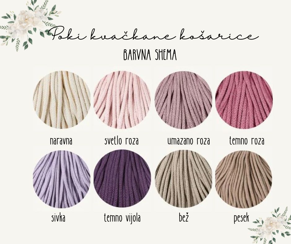 Ročno izdelana košarica je primerna za shranjevanje različnih izdelkov – kozmetike, eteričnih olj, ključev, bonbonov in sladkarij, v pisarni za pisarniške pripomočke, okrasni lonček za rože … Košarica je kvačkana iz bombažne preje in ima leseno dno.