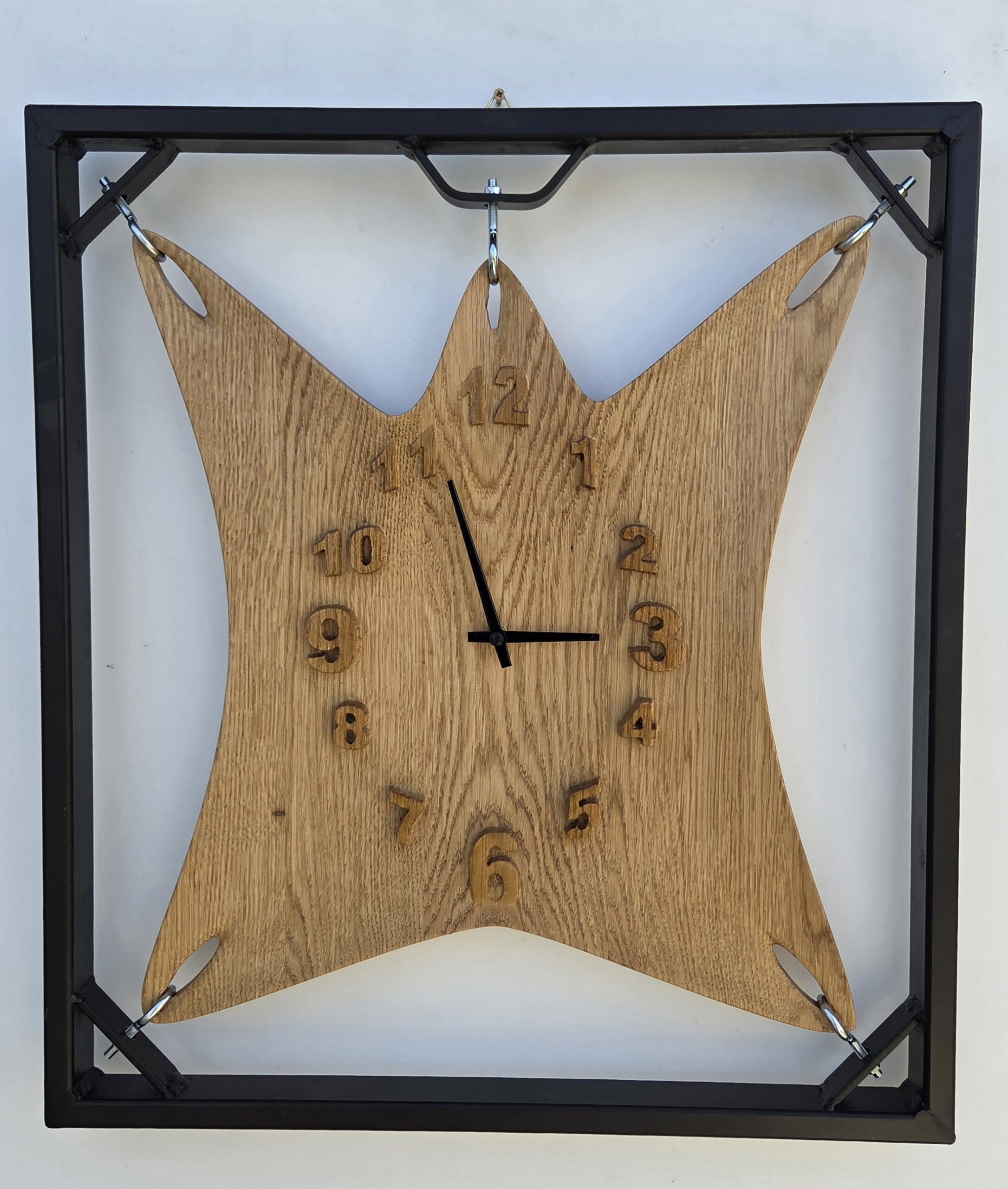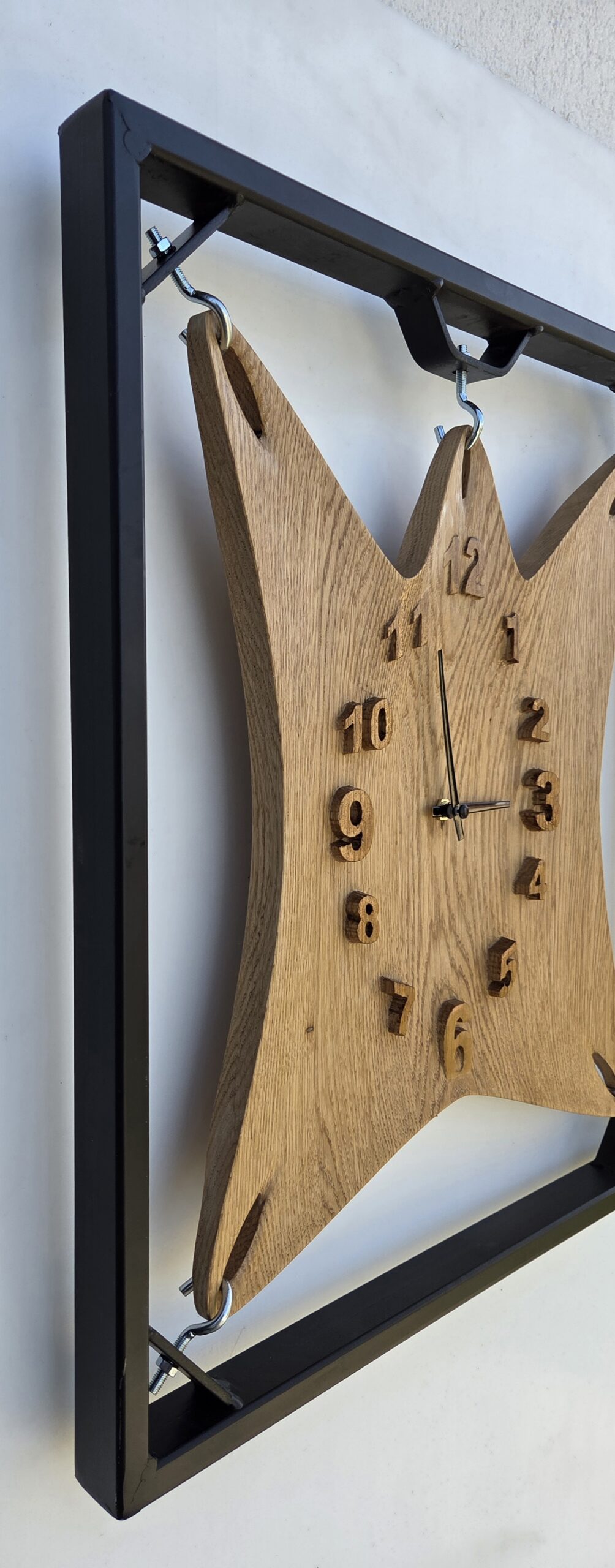 Unikatna stenska ura iz zeleznega okvirja in masivnega hrasta