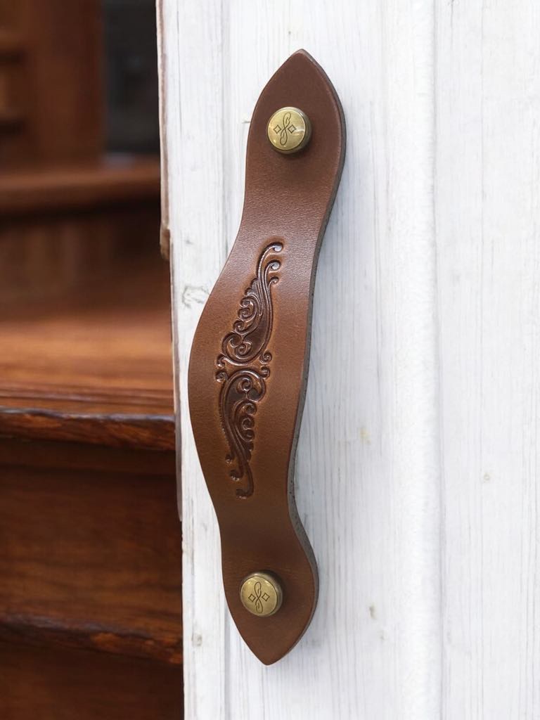 Usnjeni pohištveni ročaji za rustikalni ambient, vijaki medenina DDDesign.si