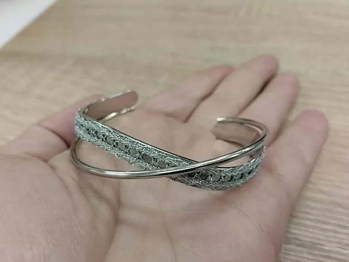 Čipka je izdelana iz metaliziranega sukanca, ki ima rahlo svetleč, kovinski efekt in prida čipki in zapestnici modern pridih.